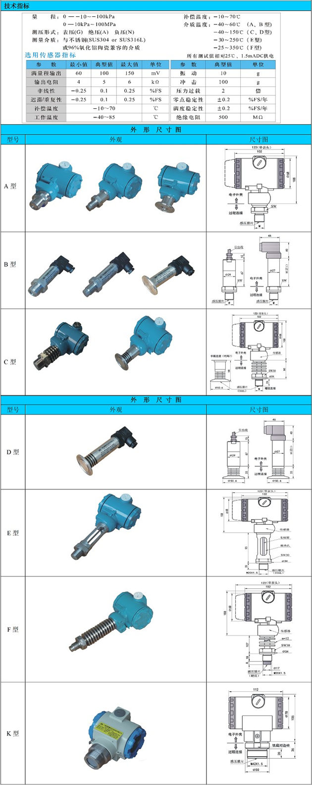 wp435型無腔壓力變送器選用進Kou高精度、高穩(wěn)定性防的芯片組裝,采用激光焊接工藝將芯片與不銹鋼外殼焊接在一起,無壓力腔體,適用于各種易堵塞、要求保持衛(wèi)生、便于清洗或無菌環(huán)境的壓力測量和控制。該產(chǎn)品具有較高的工作頻率,適于動態(tài)測量。